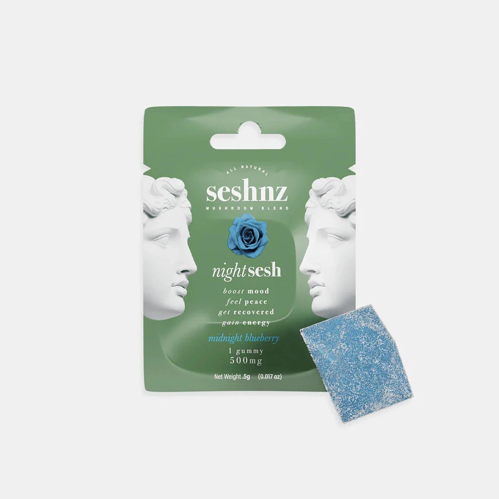 Wash Away the Day's Stress and Ignite Clarity with Seshnz Night Sesh Mushroom Blend Gummies. Seshnz Night Sesh helps you melt away worries, leaving you feeling centered while embracing the tranquility within. Made with Premium Ingredients. We use only the highest quality mushroom extracts, enhanced with the delightful tropical flavor of lychee. Pop a Seshnz Night Sesh Gummy and drift into a magical world of relaxation!